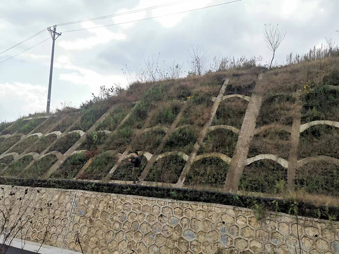 貴陽市地鐵1號線二期蠻坡站出口生態(tài)袋邊坡綠化工程從2018年6月初施工至今已完...