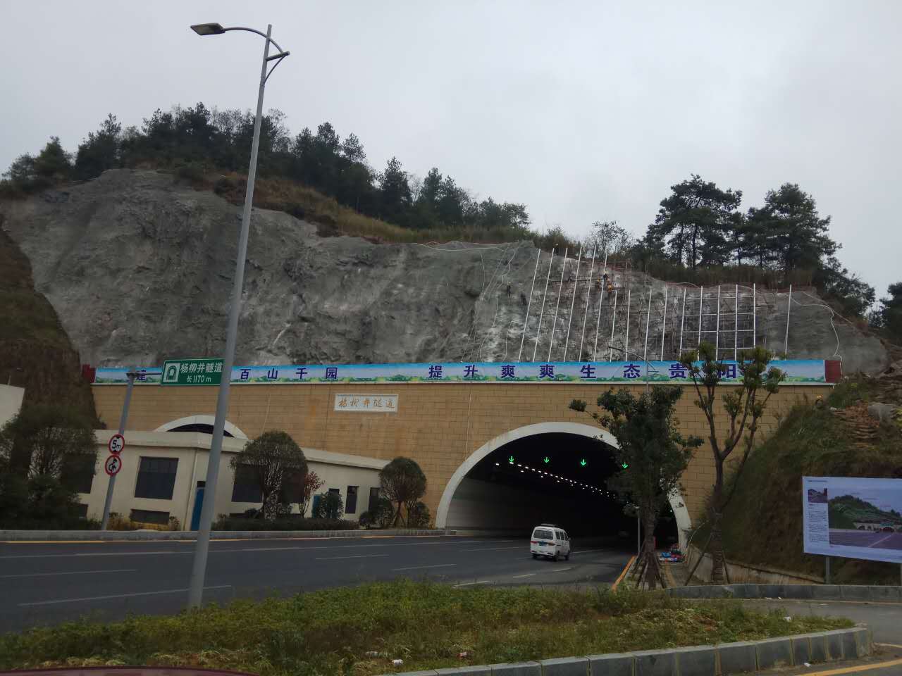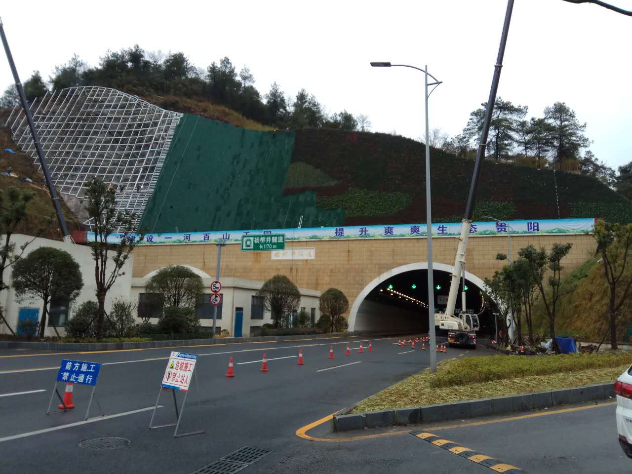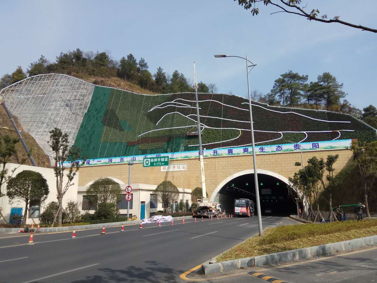 楊柳井隧道口上方邊坡綠化工程開工至今已歷時(shí)72天,工程接近尾聲;主體結(jié)構(gòu)已完成,裝飾工程已完成3/4;預(yù)計(jì)該工程在本月下旬即可完工。